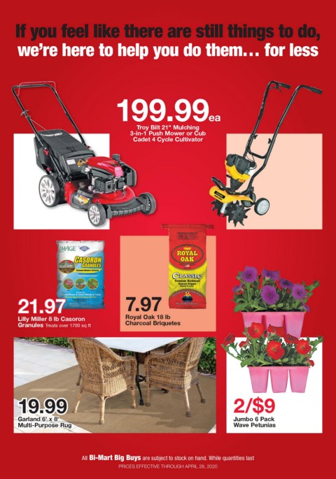 All Bi-Mart Big Buys are subject to stock on hand. While quantities last